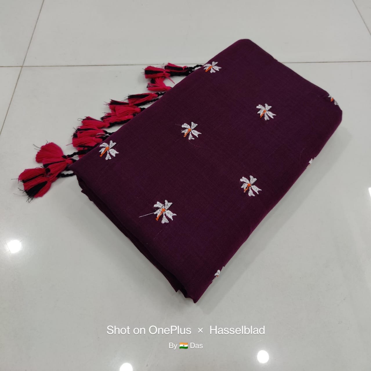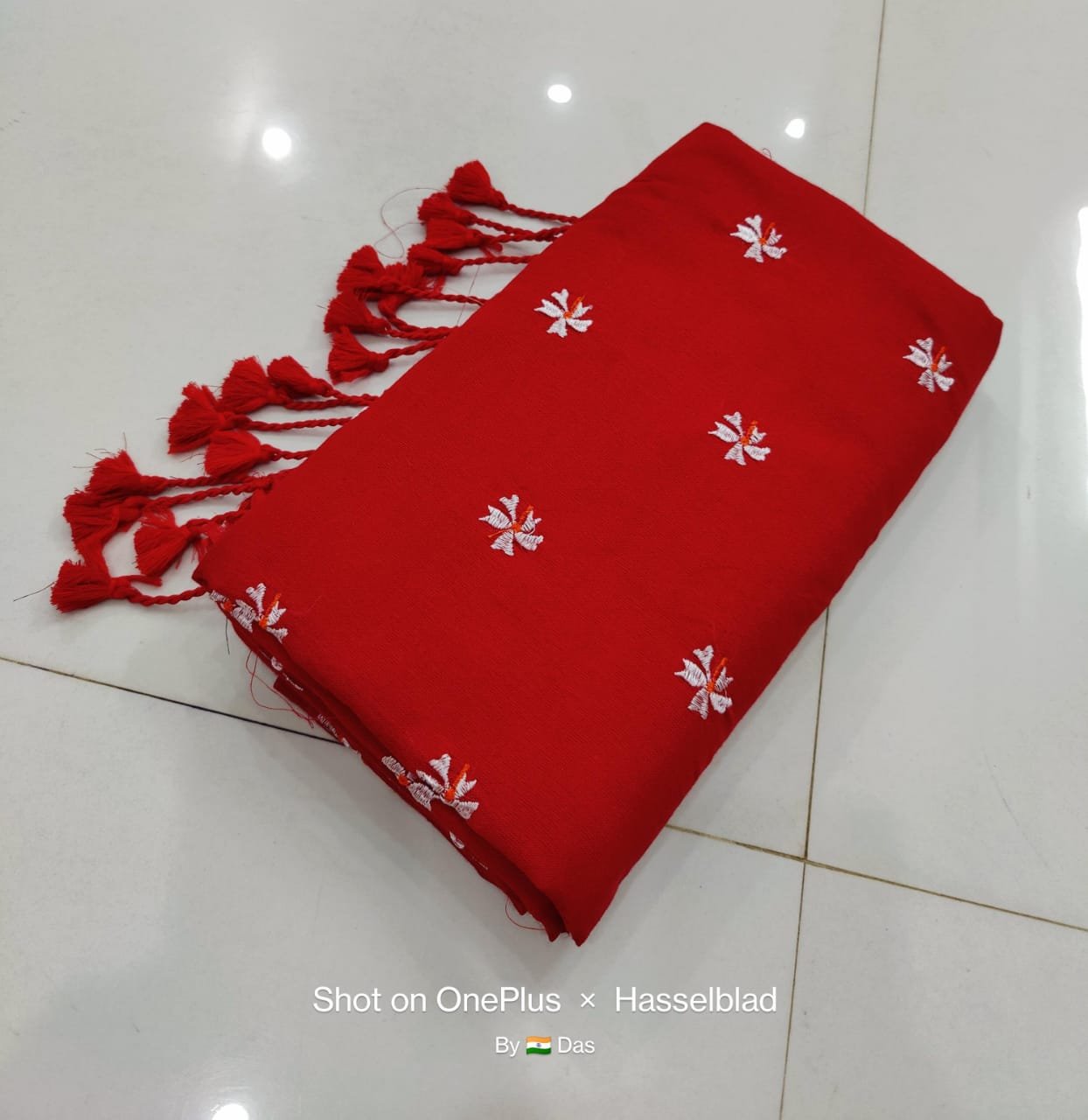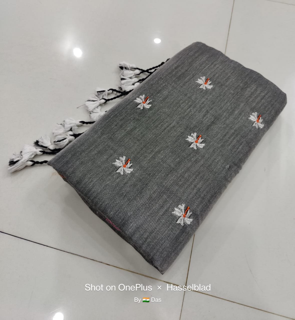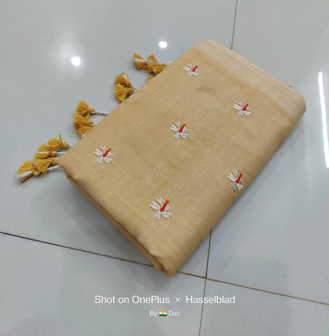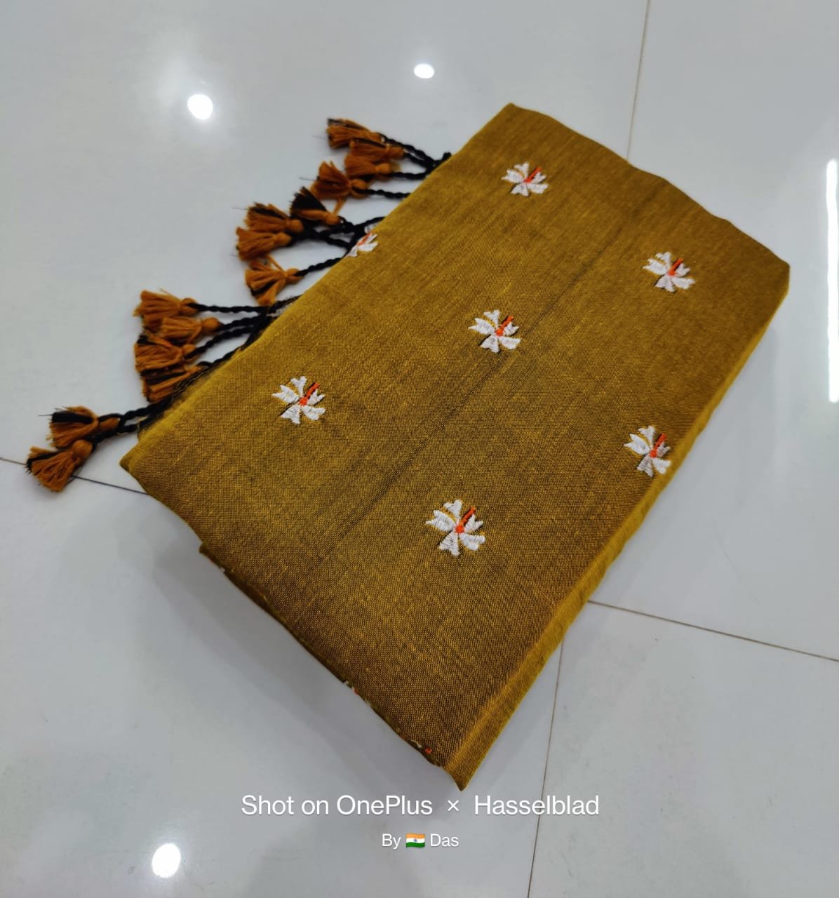 *Handloom Best Quality Khadi by cotton Shiuli Flower Saree*