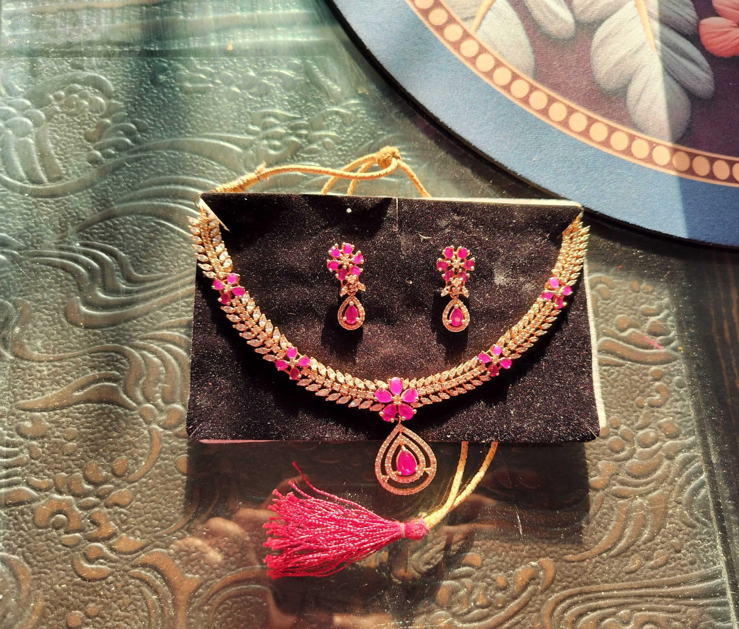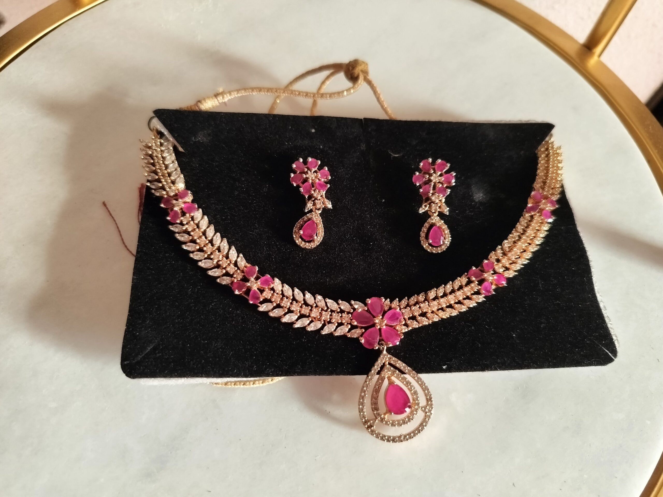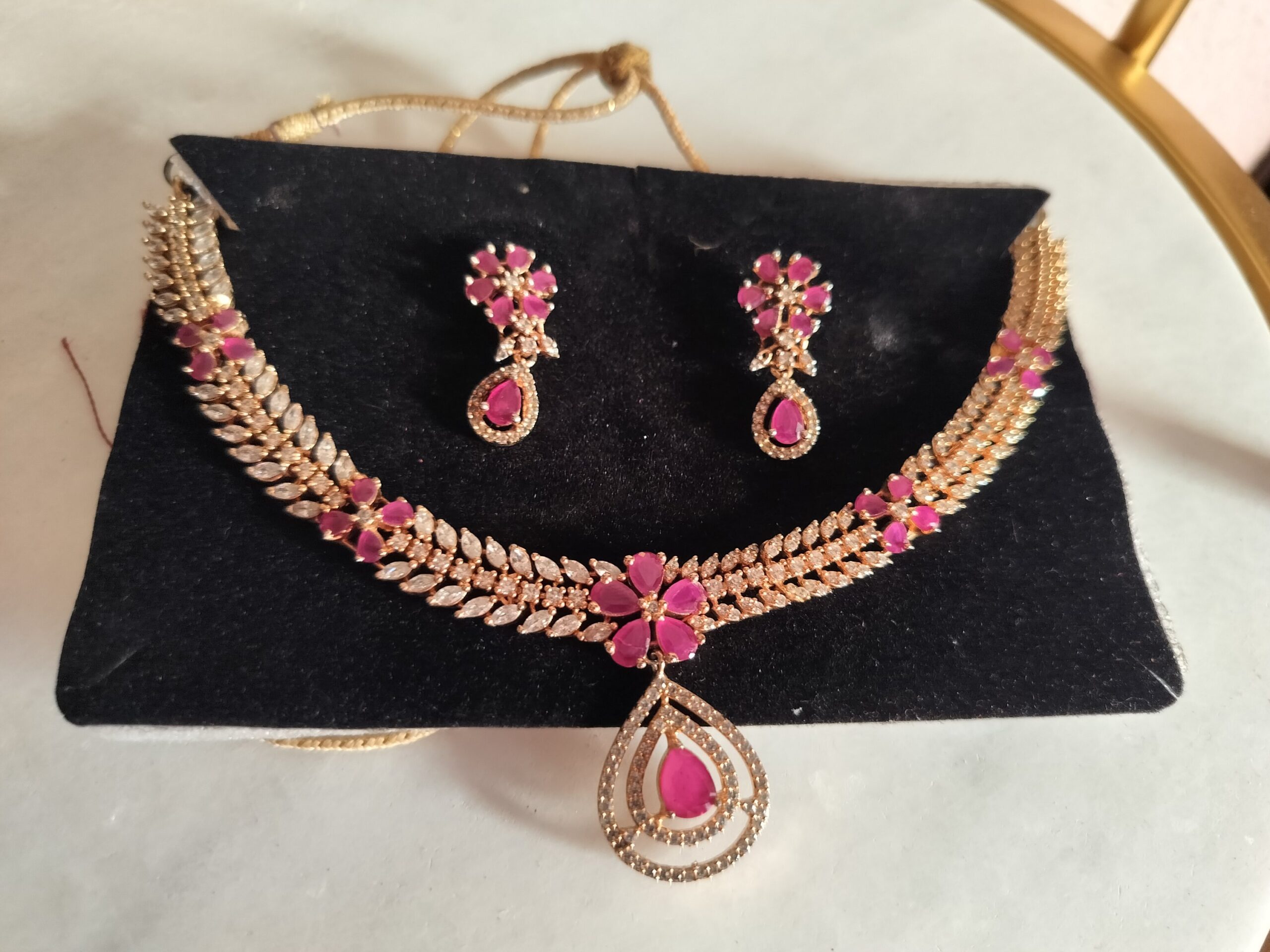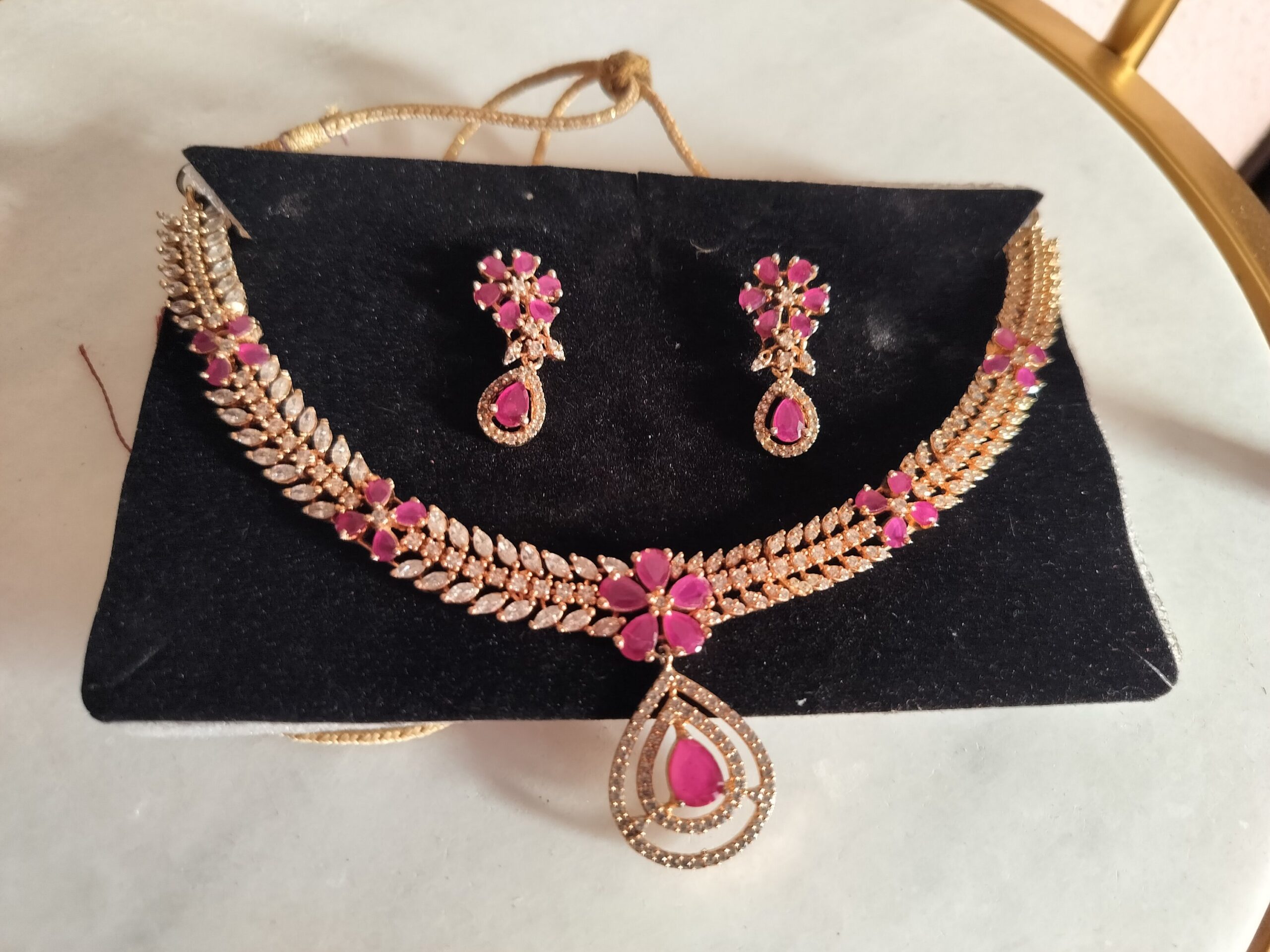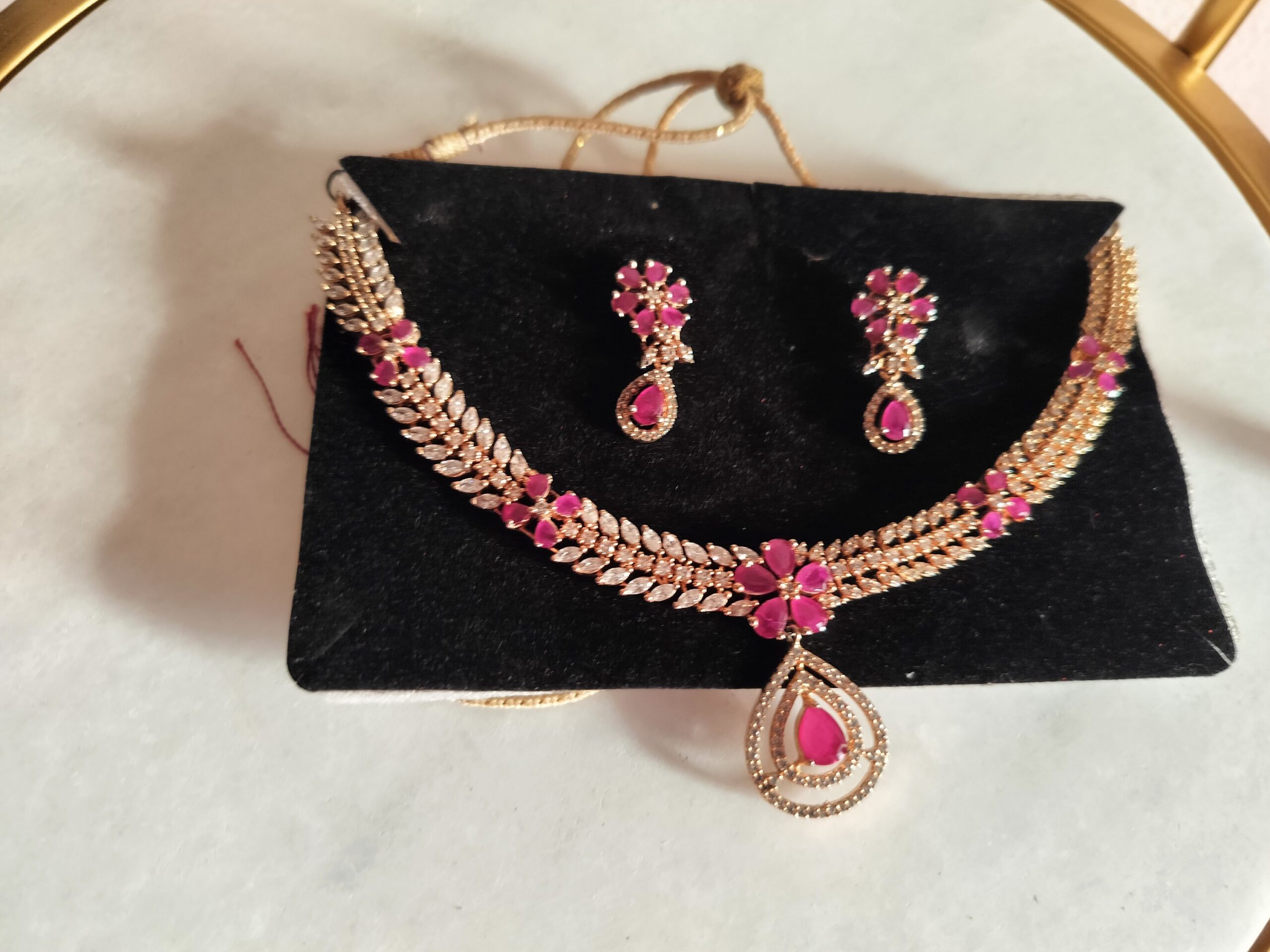 Modenest Stylish Pink & White Real AD Necklace and Earrings